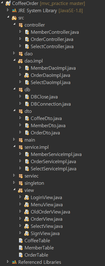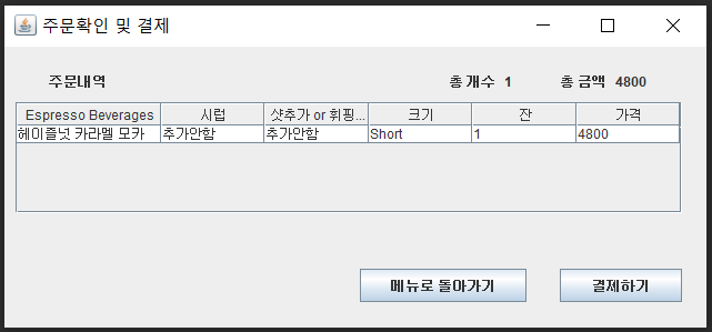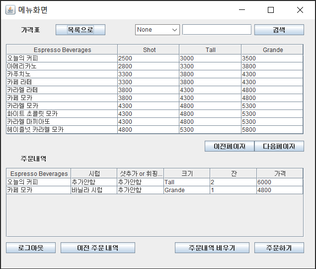 String sql = " SELECT COFFEE_NAME, COFFEE_SIZE ,COFFEE_EA, COFFEE_PRICE, ORDER_DATE "